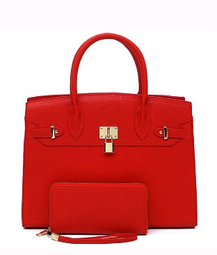 2 IN 1 Alligator Croc Satchel Set With Wallet- Coffee